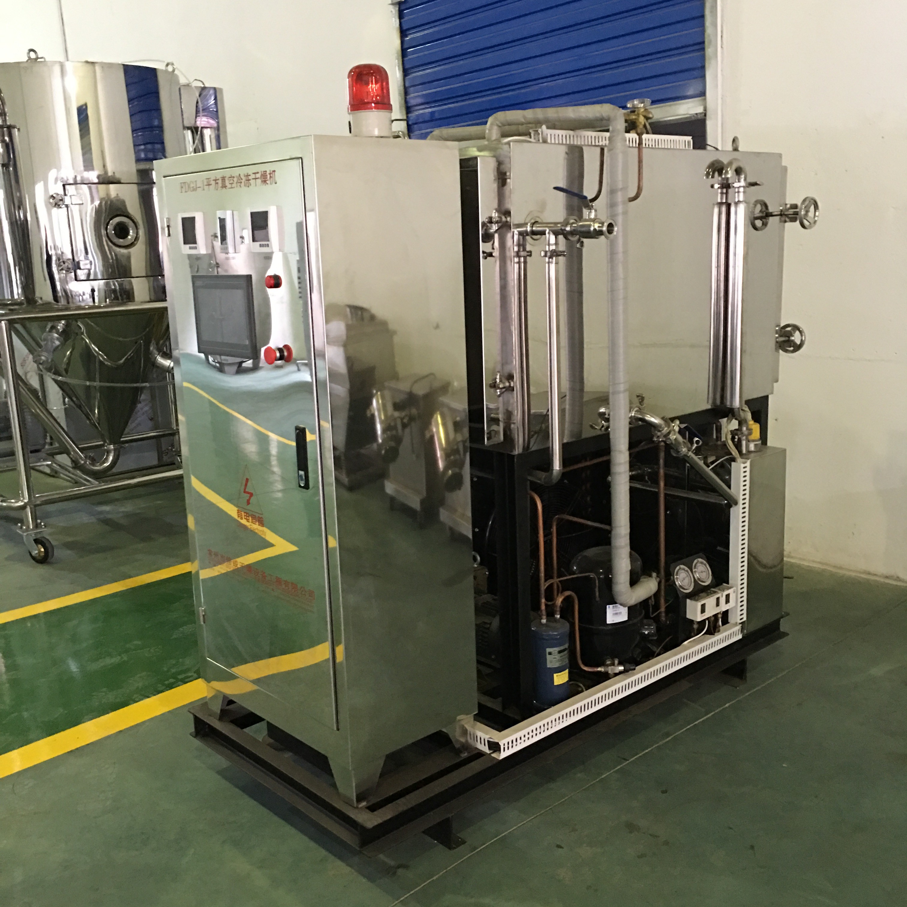 ফ্রিজ ড্রায়ার একটি রেফ্রিজারেশন সিস্টেম, একটি ভ্যাকুয়াম সিস্টেম, একটি হিটিং সিস্টেম এবং একটি বৈদ্যুতিক যন্ত্র নিয়ন্ত্রণ ব্যবস্থা নিয়ে গঠিত।প্রধান উপাদানগুলি হল ওভেন, কনডেনসার, রেফ্রিজারেশন ইউনিট, ভ্যাকুয়াম পাম্প, হিটিং/কুলিং ডিভাইস।এর কার্যকারী নীতি হল উপাদানটিকে একটি নির্দিষ্ট তাপমাত্রার নিচে হিমায়িত করা এবং তারপরে ভ্যাকুয়ামের অবস্থার অধীনে জলের কঠিন অবস্থা (বরফ) সরাসরি জলীয় বাষ্পে পরিণত হয় এবং শুকনো আইটেমগুলি পেতে নিঃসৃত হয়।